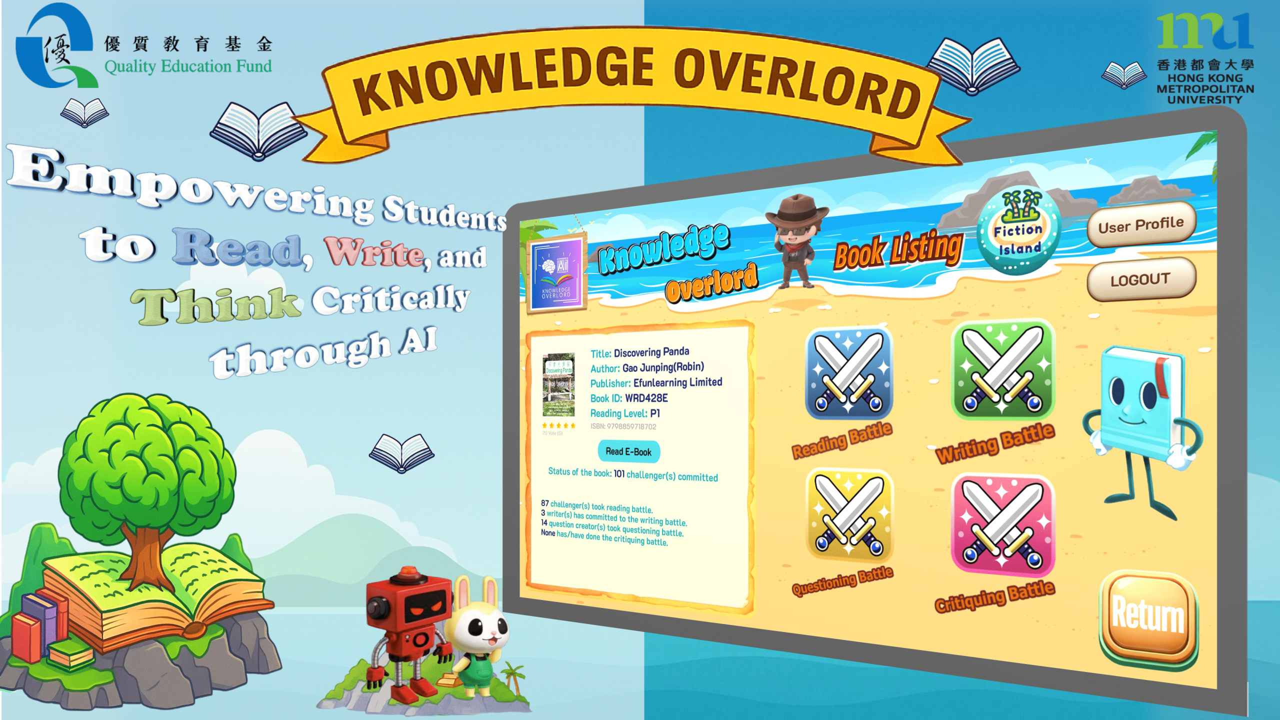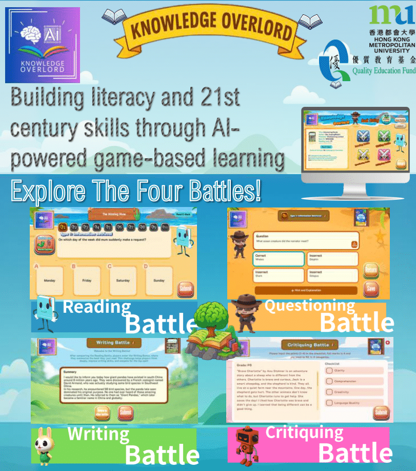 After reading a book, students answer 10 multiple-choice questions—either created by players or AI—aligned with the PIRLS/PISA comprehension levels. The first 7 questions focus on general understanding, while the final 3 are more challenging. Students earn scores based on accuracy and the number of attempts.