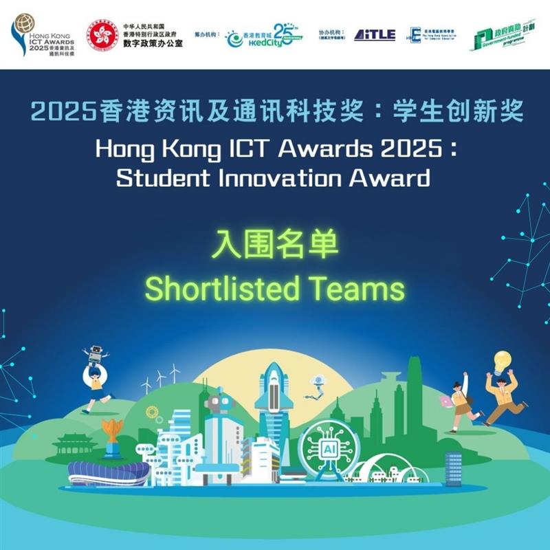 2025香港资讯及通讯科技奖:学生创新奖(The Hong Kong ICT Awards 2025: Student Innovation Award)特设「教师积极指导奖」及「学校积极参与奖」等,以表扬老师和学校对推动资讯科技的努力。促进身心健康为今年学生创新奖其中一个主题,鼓励青年以创新方案破解身心健康难题。