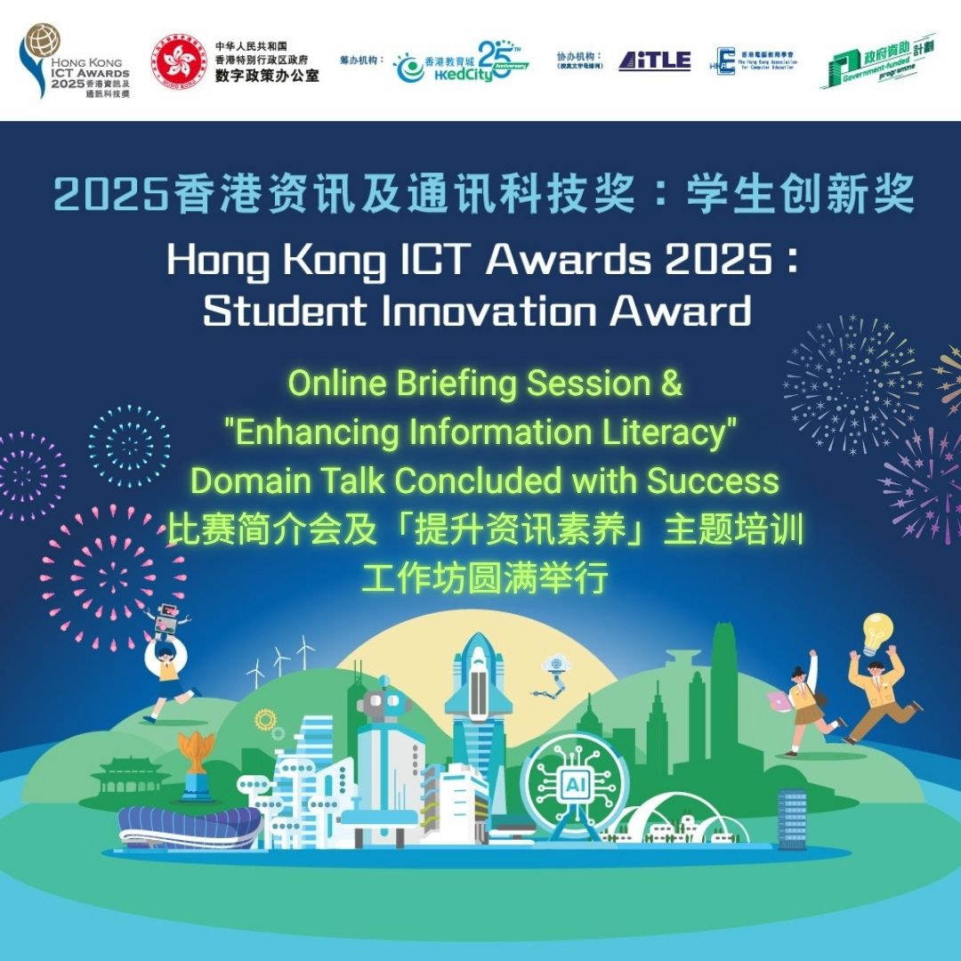 2025香港信息及通讯科技奖:学生创新奬的主题培训工作坊 – 提升学习成效已于2025年5月24日完成。是次工作坊信息科技教育领袖协会主席黄健威先生担任讲者。讲者们的精彩分享令参加者获益良多,相信将会为比赛注入了更多灵感和动力。